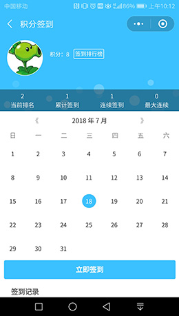 用戶登陸商家小程序進(jìn)行每日簽到,獲取相應(yīng)積分。